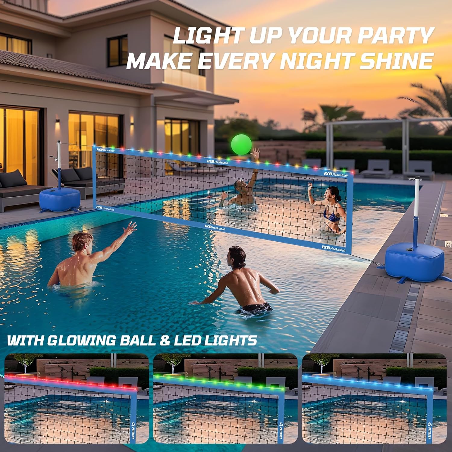 Imagine wrapping up a fantastic summer day with a night game at the pool. The Haokelball set includes a glow-in-the-dark volleyball and a LED light strip. The glow-in-the-dark volleyball adds an exciting twist, making it easy to keep track of the ball during evening play, while the LED lights create a lively ambiance at night.